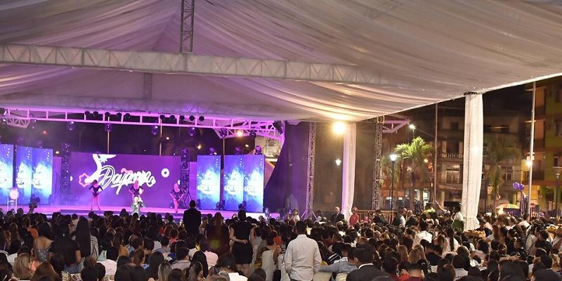 El acto, que dio énfasis a la identidad de la mujer fluminense, duró cerca de 3 horas y estuvo a cargo del presentador de televisión Eduardo Andrade y de la finalista del Miss Ecuador 2010, Manosalvas, mientras que la guayaquileña Dayanara Peralta, prendió la alegría del público a través de varios éxitos musicales. La participación de artística de Iván Barahona, exparticipante del programa Yo Me Llamo, también fue clave para salida en traje de galas de las guapas señoritas.