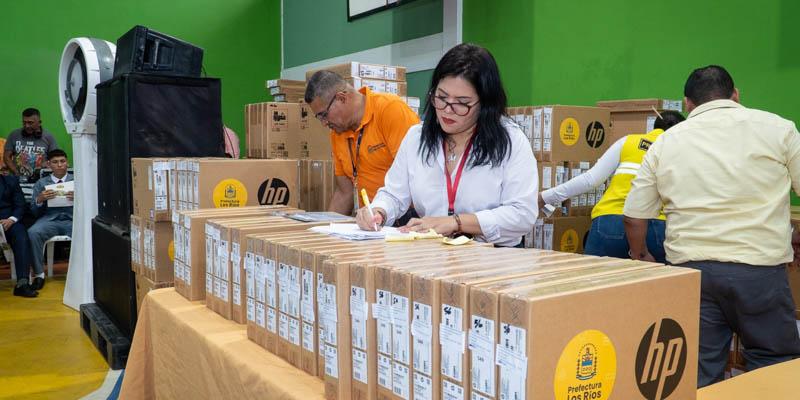 En el marco de la primera fase de la IV Edición del programa Bachiller Digital, el prefecto de Los Ríos, Johnny Terán, dispuso la entrega de 128 computadoras portátiles a estudiantes y dirigentes estudiantiles de terceros de bachillerato que, por distintas circunstancias personales o familiares, no pudieron asistir a los actos masivos de adjudicación realizados semanas atrás.