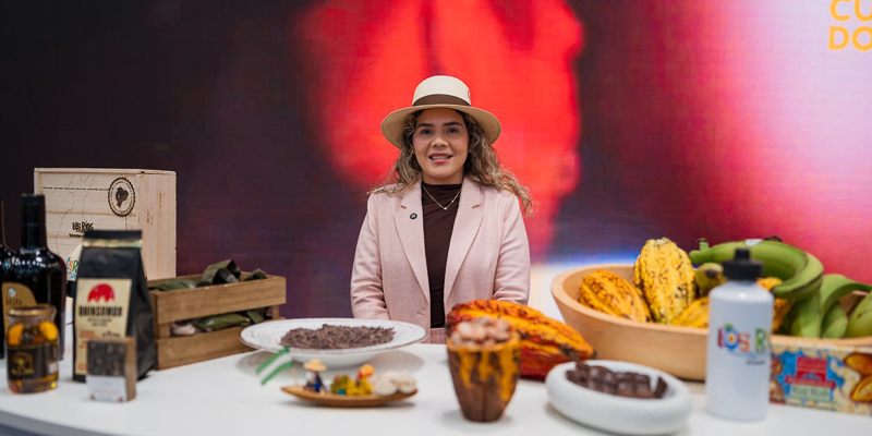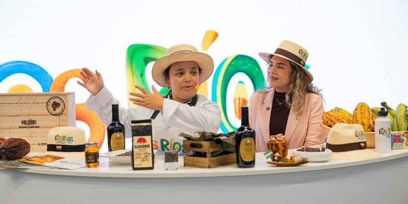 En representación de la Prefectura de Los Ríos, la viceprefecta Mayra Díaz acompañó la participación institucional y estuvo presente durante el show de cocina en vivo realizado por Martha Meza, emprendedora del cantón Vinces y creadora de la marca Jacao. La presentación puso en valor productos emblemáticos ecuatorianos como el banano, el plátano verde, el cacao y el café.