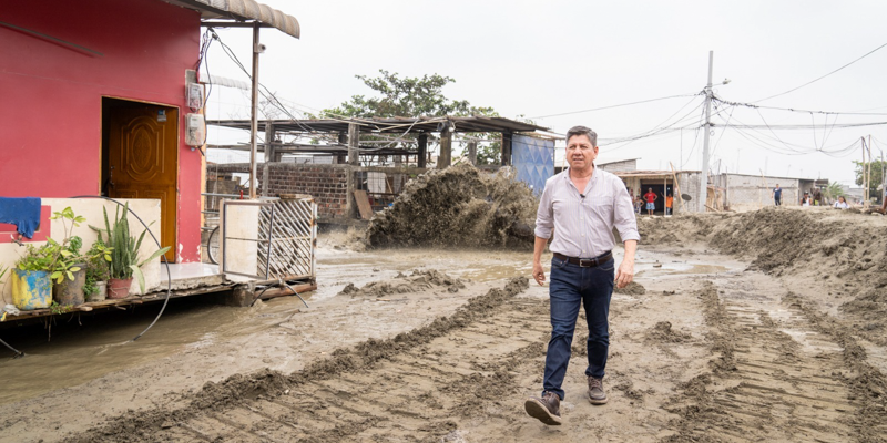 El prefecto Johnny Terán dispuso acciones inmediatas en Montalvo con maquinaria y asistencia social para proteger a familias vulnerables frente a las lluvias.