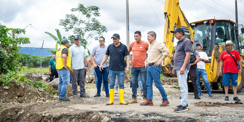 Una vez conocida la emergencia, el prefecto Johnny Terán dispuso el traslado inmediato de maquinaria pesada para intervenir el tramo afectado. La autoridad acudió al sitio y supervisó los trabajos de retiro de material colapsado, limpieza del cauce, estabilización del terreno y rehabilitación provisional de la vía, lo que permitió restablecer la circulación vehicular.